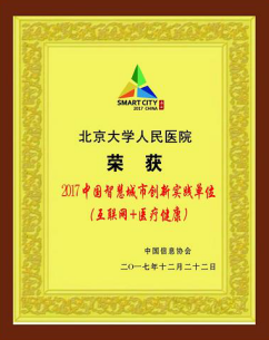 王天兵教授的大会发言反响强烈,受到与会专家、同行的一致好评及肯定。同时,在本次大会上,北京大学人民医院凭借一直以来在互联网、信息化等方面创新工作中取得的成绩获得由中国信息协会颁发的“2017中国智慧城市创新实践单位(互联网+医疗健康)”称号。
