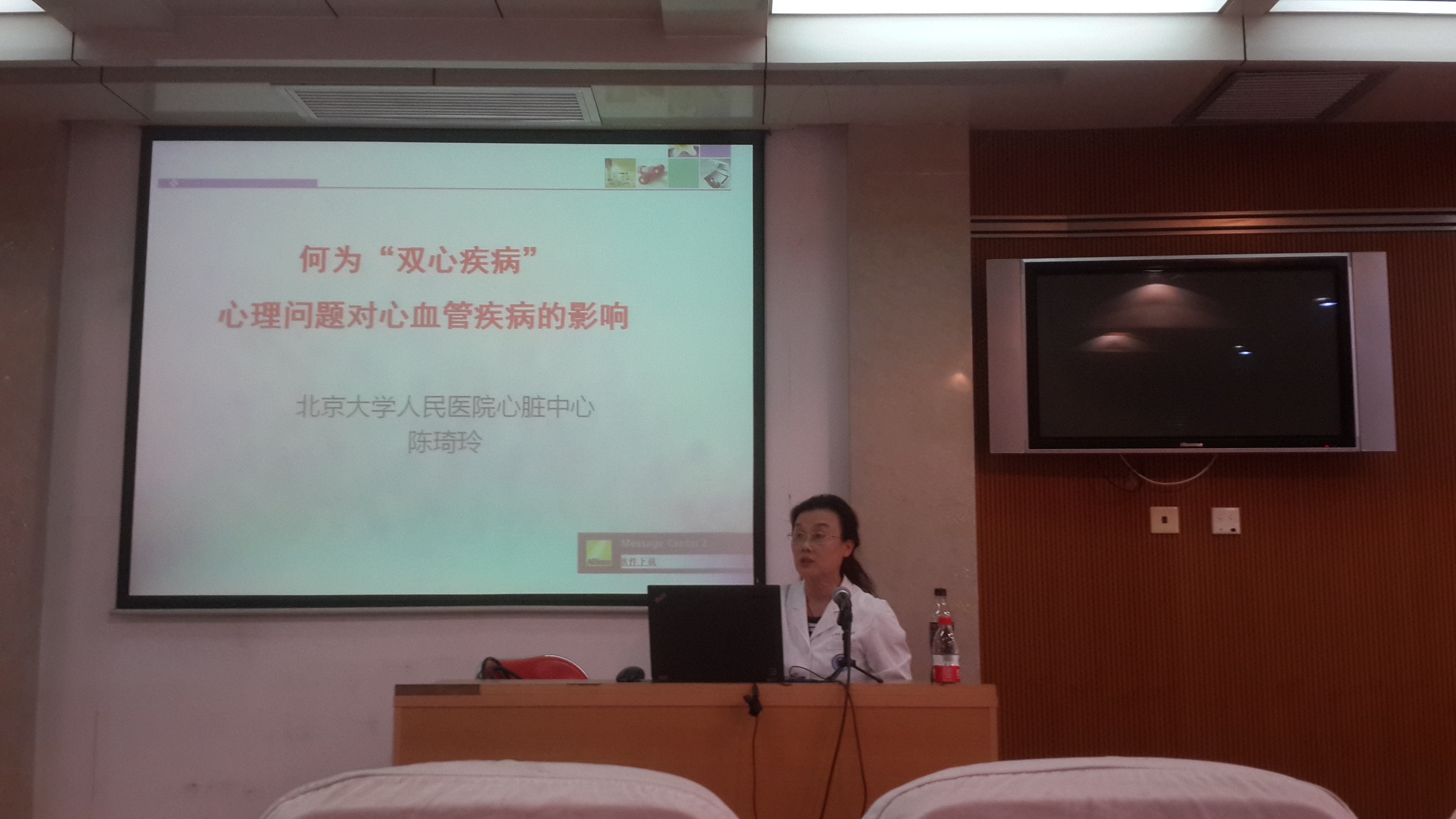 陈琦玲主任医师通过讲解自己在门诊遇到的病例,向职工们叙述了“心病”与心血管疾病的临床表现。“心病”属于心理疾病,无器质性改变,却有着与心血管疾病类似的临床症状。很多患者,特别是更年期的患者,其临床症状来自于心理性疾病而并非器质性病变,只要打开心结,其症状也就不治而愈了。临床上不少症状重却找不到发病原因的患者都属于这种情况。陈琦玲主任医师通过一系列数据,向职工们阐述了心病不仅存在于国人群体中,在全世界的范围内都有。国外医学已经开始致力于改善心理疾病对心血管病症的影响,“双心”医学日渐被人们所接受和重视。