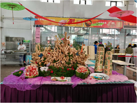 拱形的气球门烘托出美食周的喜庆气氛,食堂外的糕点品尝处围满前来试吃的职工。大家一边品尝着糕点,一边津津乐道地点评着,现场一片其乐融融的景象。走进食堂,用各种食材雕刻而成的摆件映入眼帘:用冬瓜雕刻的“舌尖上的人民医院美食”青翠欲滴,用虾、豆皮、西兰花拼出的美食拼盘巧夺天工、用西瓜雕刻的玫瑰花晶莹剔透……令人目不暇接。在菜品区,数十道菜肴、风味小吃、特色食品应有尽有,高大上的烤鸭、接地气的肉夹馍,惹人馋涎欲滴。食堂中,前来就餐的职工排起了长龙,处处可见举箸笑谈的职工,大家兴致勃勃地议论着菜品,交流着品尝美食带来的惊喜。午饭之后,职工们用投票的方式选出了心仪的菜品,并等待美食周过后的评选结果。