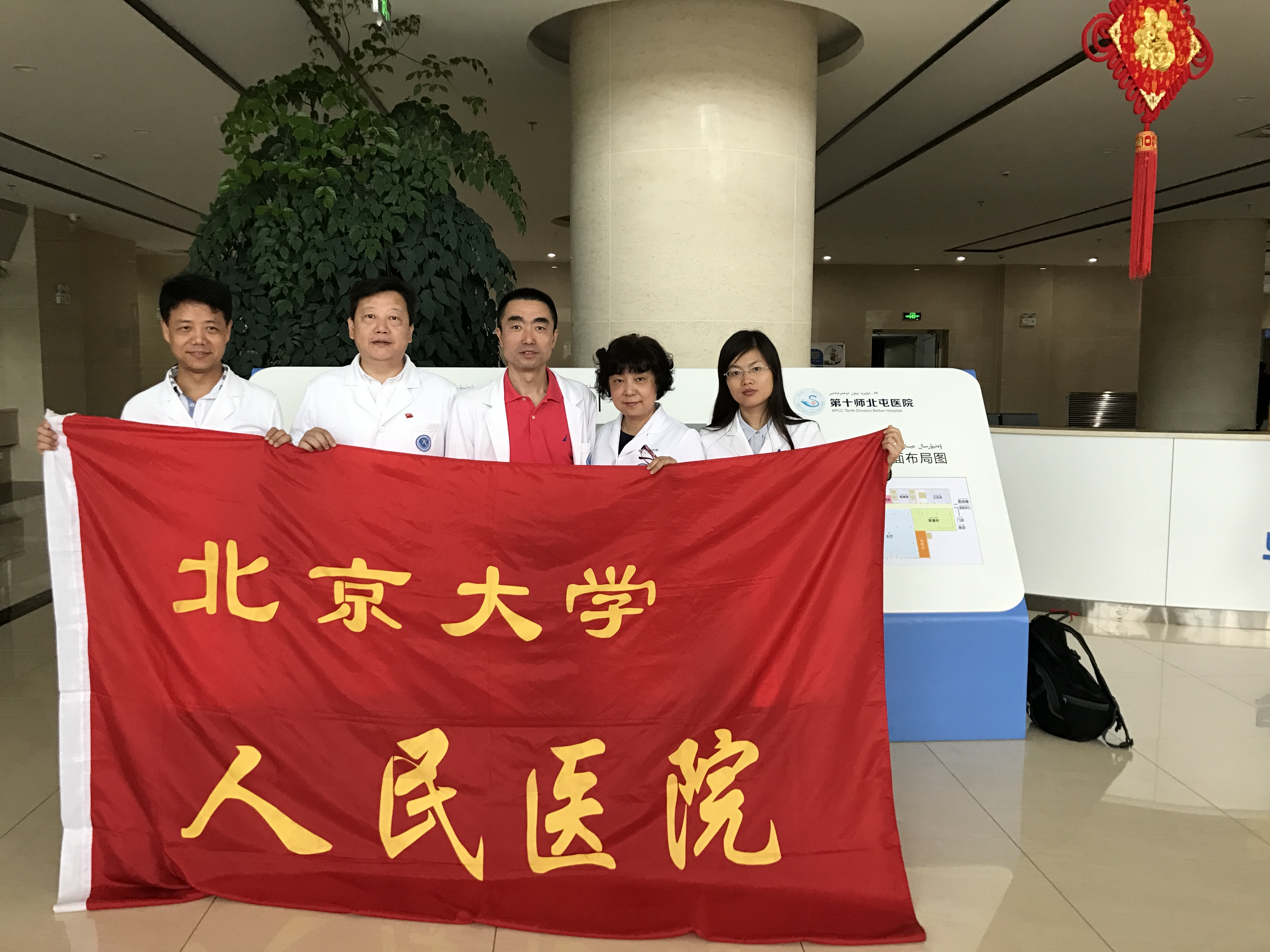 2017年6月16日—23日,我院党委副书记、工会主席陈红松、急诊科郭杨、普外科钟朝辉、骨科王会民、妇产科祝洪澜等5名医生职工,参加了由中华全国总工会组织的北京大学医疗专家赴新疆兵团十师义诊项目。此次活动相继在新疆北屯医院、第十师186兵团卫生服务中心、第十师185兵团卫生服务中心等多地进行,我院的5名专家和来自北京大学医学部其他三所附属医院的多名专家教授一起团结合作,克服酷暑炎热、蚊蠓猖獗的恶劣条件,为当地屯垦军民、汉族、少数民族群众、边境哨所官兵指战员,积极开展门诊义诊、住院患者查房、医护人员授课、急危重患者病例讨论、疑难病例会诊、座谈交流等多种形式的医疗活动。我院钟朝辉医师和王会民医师不畏路途劳顿,相继在北屯医院参加多次手术指导,并针对医护人员在术后患者管理方面进行培训。此次活动也深入边防哨所最前线,在中哈边境北沙窝哨所和军武哨所对守边卫士进行慰问、查体和学习,感动于他们那“一生只做一件事,我为祖国当卫士”的忠诚。