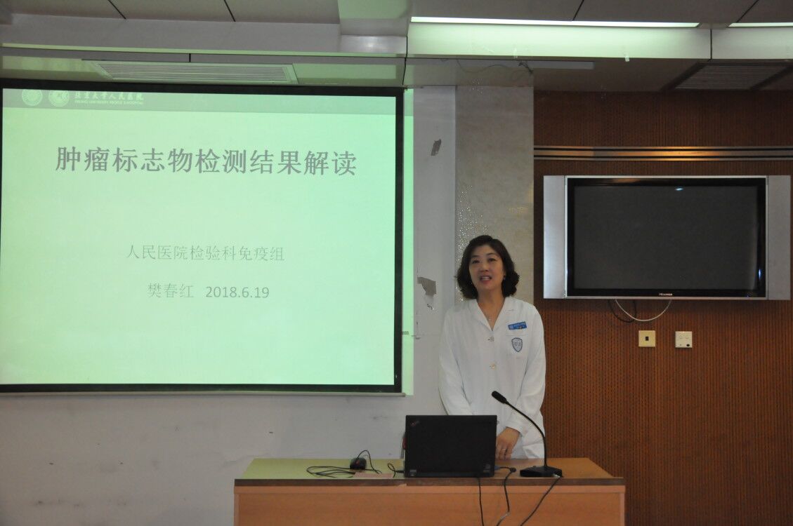 说到肿瘤,很多人谈之色变。越来越多的人将肿瘤标志物检测作为常规体检项目,一旦发现结果超标,心中难免不安,以为自己已经得了癌症。真的是这样吗?2018年6月19日中午12:00,医院工会邀请检验科樊春红副主任技师为职工们讲解有关肿瘤标志物的知识。