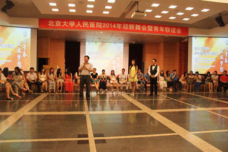 2014年8月26日晚上,由北京大学人民医院人事处和团委主办的“舞动青春,绽放梦想”迎新舞会暨青年联谊会在科教楼三层多功能厅举办。来自北京大学人民医院、北京市交管局和西城区检察院的130余名“舞林高手”参加了舞会。医院党委副书记陈红松,人事处处长王晶桐,团委书记关婷,团委副书记李奕璋、迟骋出席了舞会。北京市交管局团委书记熊占也应邀出席本次舞会。
