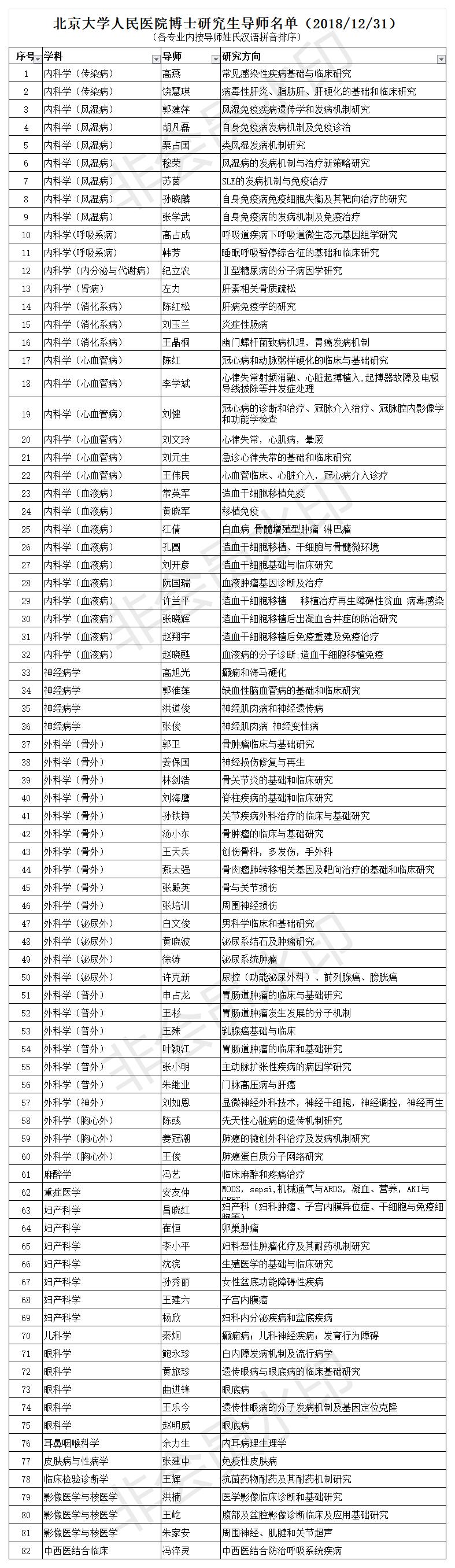 北京大学人民医院博士研究生导师名单(2018/12/31)