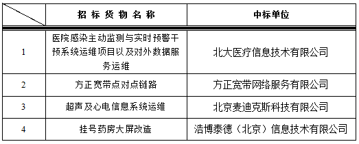 我院于2017年4月20日对以下信息运维改造项目进行院内谈判,中标结果如下:
