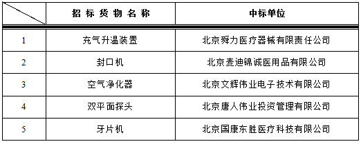 我院于2017年10月19日对以下医疗设备进行院内谈判,中标结果如下: