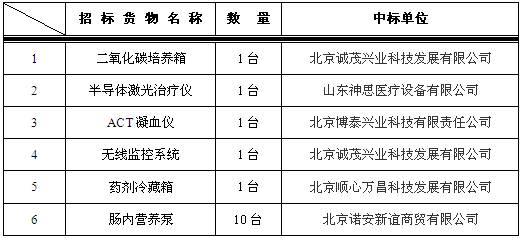 我院于2015年6月10日对以下设备进行院内谈判,中标结果如下: