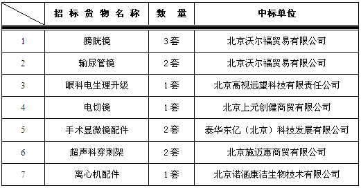 我院于2015年6月26日对以下设备进行院内谈判,中标结果如下: