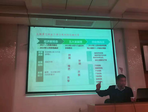 王教授从宏观经济形势分析、供给侧结构性改革、现代经济体系建设三个方面进行报告。当讲到了我国改革开放40年的经济变化及在世界的地位不断提升时,王教授用很多数字和图形做比较,让大家清楚地看到了我国的进步和飞跃。