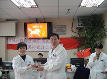 2014年1月26日,在新春到来之际,北京大学人民医院中医科齐聚一堂,笑语欢歌,以科技知识闯关赛的形式共贺马年新春。