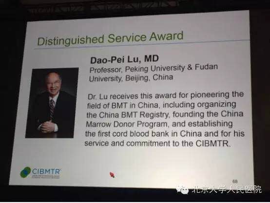 猴年伊始再传喜讯,2016年2月20日在美国夏威夷召开的美国骨髓移植学会与国际血液和骨髓移植研究中心(CIBMTR)的联席会议上,北京大学血液病研究所创始人,我国血液病学家和造血干细胞移植专家,中国工程院院士陆道培,荣获CIBMTR “杰出服务贡献奖”。