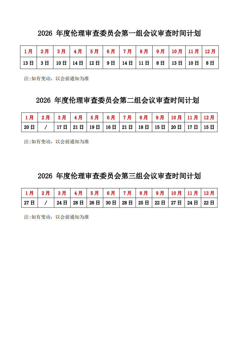 2025 年度伦理审查委员会第一组会议审查时间计划