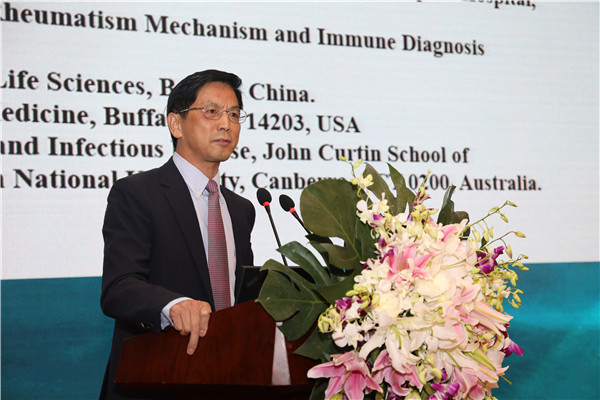 北京大学临床免疫中心主任、人民医院风湿免疫科主任栗占国教授做了题为《低剂量白介素(IL)2在干燥综合征和其它自身免疫病的治疗应用》的研究报告。栗占国教授在报告中指出,低剂量IL-2改善干燥综合征临床症状并维持免疫稳态,并且不增加感染风险,是一种也可用于其他风湿免疫病的潜在治疗方式。