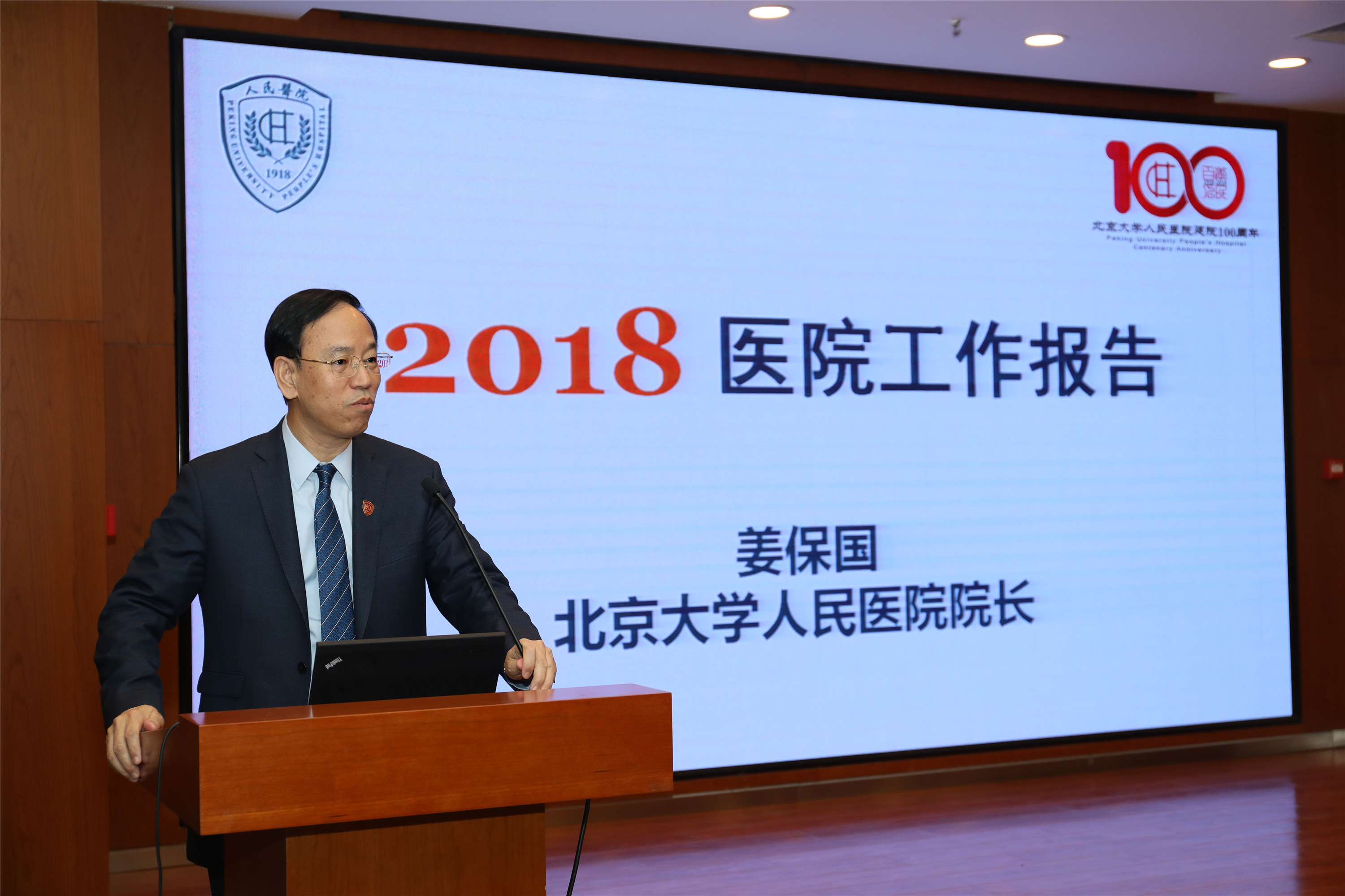 北京大学人民医院院长姜保国代表医院做《北京大学人民医院工作报告》。