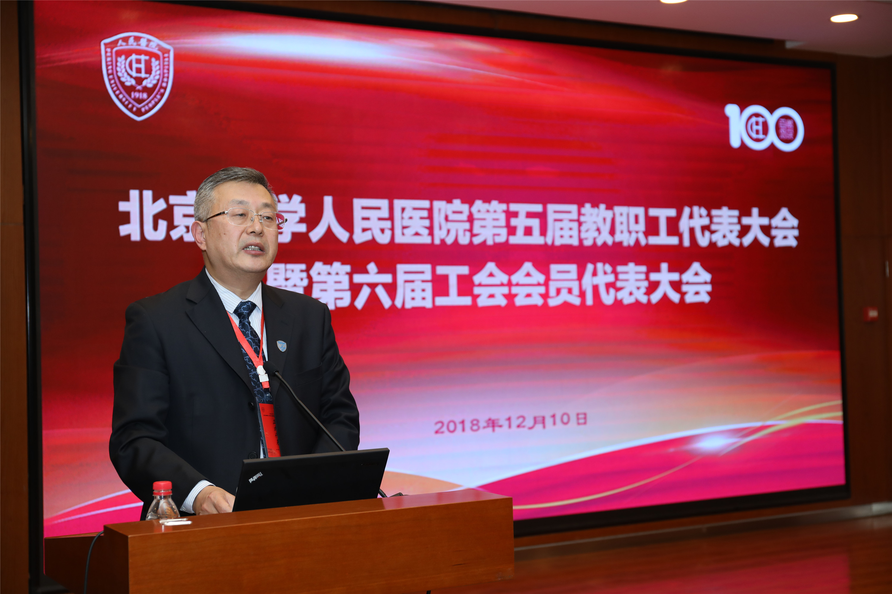 大会举行恰逢医院百年华诞。一百年来,一代代“人民医院人”为医院发展奉献智慧积淀力量。2018年,全院教职员工在医疗、教学、科研各领域默默耕耘不懈奋斗,医院在全面可持续发展的道路上稳健前行。
