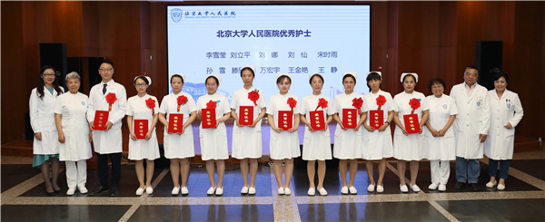 龚美陵老师、黄晓波主任、刘开彦副所长、张晓辉副所长、王晶桐处长为“北京大学人民医院优秀护士”获奖者颁奖