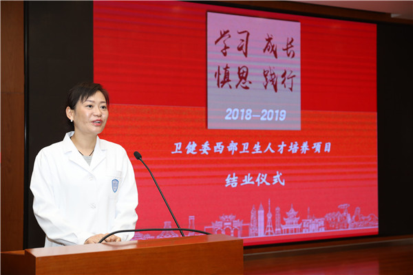 来自青海省黄南州人民医院的消化内科医生郝兰作为学员代表,表达了为期半年在京学习生活的感慨以及对北大人民医院悉心培养的感谢。
