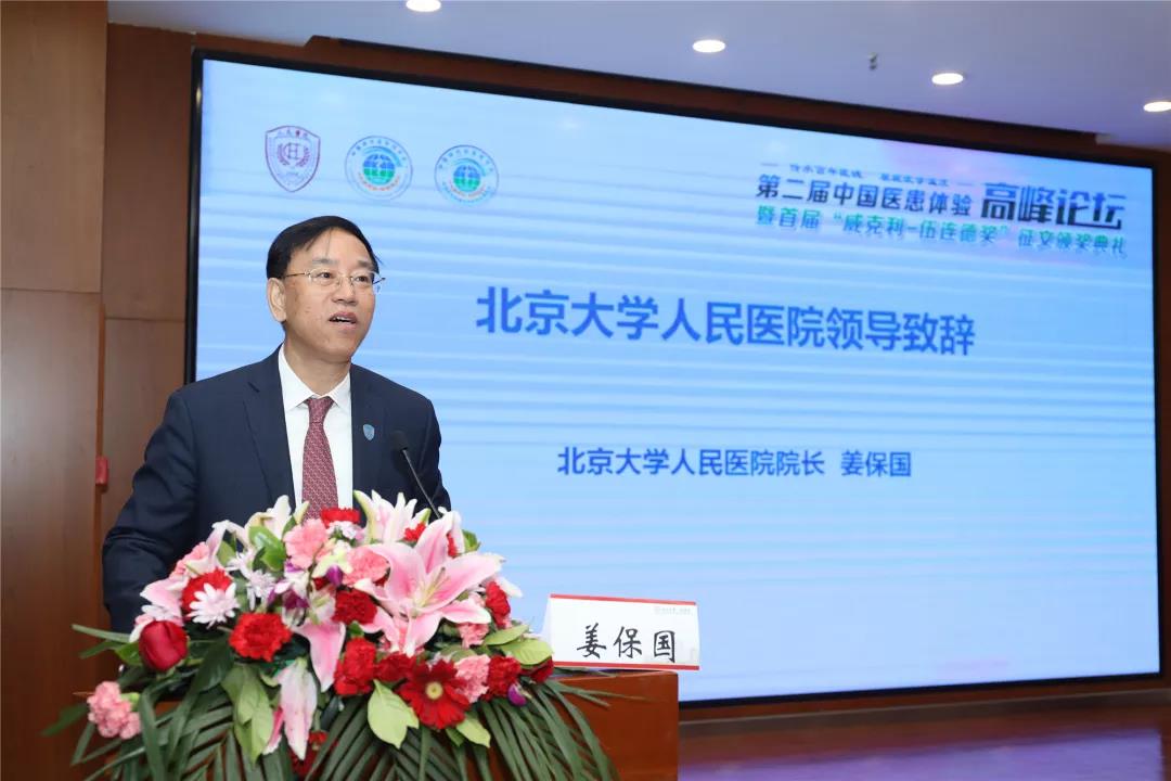开幕式上,中国研究型医院学会医患体验管理与评价专业委员会主任委员、北京大学人民医院院长姜保国致辞。姜保国院长指出,自古以来,承担救死扶伤之重任的医学比其他任何一门科学都更加注重人文关怀。创建于1918年的北京大学人民医院作为第一家由中国人自行筹建并管理的综合性西医医院,始终以仁恕博爱之人文精神,以聪明精微之科学态度,以廉洁醇良之高尚品德,坚守着仁心济民的崇高使命。医院首任院长伍连德博士,作为首位在国际学术期刊发表文章的中国学者,先后四次在《柳叶刀》发表论文,并于1935年被提名诺贝尔生理学或医学奖候选人。