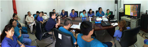 曹宝平大夫在几内亚期间,不辞辛劳,经常深入到施工现场、临床工作一线进行实地考察。专家组成员发挥各自的专业优势,充分展示了中国感染病、急重症医学和公共卫生专家的风采。曹宝平大夫在到达几内亚当日就开始协助医疗队诊治危重病患,并多次前往中几友好医院义务会诊。专家组还深入到几内亚科纳克里埃博拉治疗中心之一东卡医院实地考察,获取几内亚埃博拉防控措施第一手资料。曹大夫和专家组其他成员通过大使馆、WHO SEOCC驻几内亚办事处、WHO网站等途径获取埃博拉疫情最新信息,汇总并分析疫情数据、总结防治经验并撰写工作报告。此外,专家组还举办讲座,普及防控疫情及常见热带病的相关知识,与医疗队共同编写《“埃博拉”、“疟疾”防控手册》等。