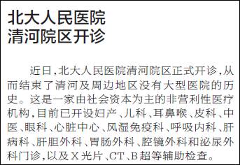 《北京晚报》:北大人民医院清河院区开诊