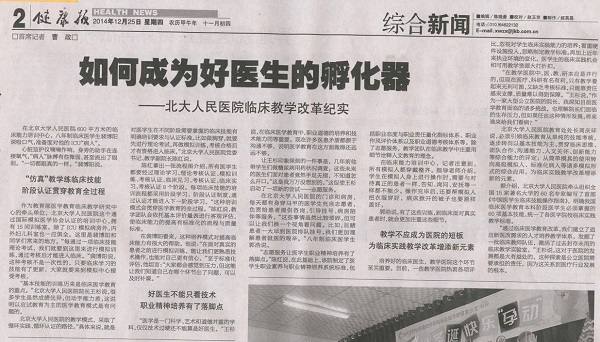 健康报:如何成为好医生的孵化器-北大人民医院临床教学改革纪实