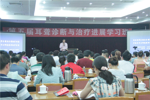 2014年7月4至6日由北京大学人民医院耳鼻喉科主办的“第五届耳聋诊断治疗进展学习班”成功举办。本学习班是由卫生部批准的国家级继续教育项目,讲者主要由北京大学人民医院耳鼻喉科余力生教授、夏瑞明主任医师、马鑫副主任医师医师组成,并邀请了包括中国突发性聋多中心临床研究总负责人、301医院耳鼻喉科主任杨仕明教授,全军耳鼻咽喉头颈外科学专业委员会副主任委员、西京医院耳鼻咽喉头颈外科主任邱建华教授、中国心理卫生协会心身医学专委会主任委员、中华医学会精神病学分会常委兼秘书长王向群教授等国内知名专家进行授课,学习班本着“为国内先进耳科专家搭建良好的交流平台,普及和推广耳科疾病的规范化诊疗原则”,向来自北京、河北、河南、天津、辽宁等地一百余位耳鼻喉科医师献上了异常丰盛的知识盛宴。