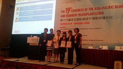 2014年10月16-19日,第19届亚太国际造血干细胞移植会议在杭州召开,超过1000名来自全亚洲乃至全世界血液学及造血干细胞移植学的专业人士出席了此次会议。北京大学人民医院血研所黄晓军所长受邀与浙江大学血液病研究所的黄河副所长共同担任此次大会的主席,并在大会上进行了以“Allo-HSCT can improve the clinical outcome for high-risk t(8;21) AML”(《异基因造血干细胞移植可改善高危型t(8;21)急性髓性白血病的临床预后》)为主题的发言,介绍了医院血研所利用分子标记技术,预先筛选出t(8;21)急性髓性白血病高危患者,并通过造血干细胞移植降低其复发率,改善患者生存的研究成果。颜霞科护士长受邀作为演讲嘉宾出席了本次会议,在18日的护理专场会议中进行了题为“Comprehensive prevention strategy can decrease the risk of oral mucositis during allogeneic hematopoietic stem cell transplantation”(《综合预防策略可有效降低造血干细胞移植相关口腔黏膜炎的发生风险》)的英文汇报,介绍了医院血液科多年来在造血干细胞移植粒缺期患者口腔黏膜炎预防和护理方面的宝贵经验。
