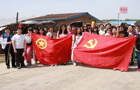 中午稍事休息之后大家开始了活动的第二项内容——种花生比赛。大家按照年龄组成20~30岁的“正青春队”,30~40岁的“战青春队”和40~50“赛青春队”,在趣味的“授旗仪式”之后种花生开始了。大家都摩拳擦掌,跃跃欲试。其实队伍里的大多数人完全不了解花生是如何种植的,在种植花生的老师进行讲解之后3个小分队展开了竞赛。“赛青春队”的成员担心“我们能赢得了年轻人吗”?因为“刨土挖坑”加“弯腰洒种”还是一件体力活。事实上,在这个过程中,高龄组丰富的生活经验弥补了他们在体力上的劣势。最终经过评委对种植质量和种植效率的综合评定,三个队均在不同方面获得了好评。而最终的结果会在收获的9月见分晓,敬请期待9月的到来。