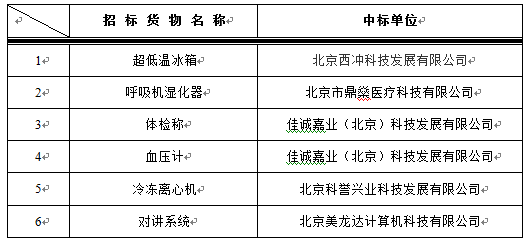 我院于2016年11月17日对以下设备进行院内谈判,中标结果如下: