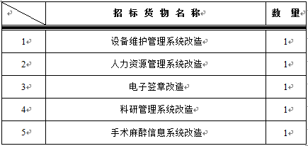 一、为满足临床科室需求,设备处拟对以下系统维护进行谈判采购,采购项目的内容及数量: