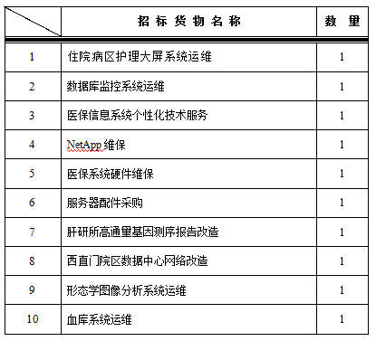 一、 为满足医院信息系统建设需求,信息中心拟对以下信息系统运维改造进行谈判采购,采购项目的内容及数量: