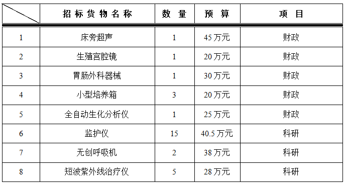 一、为满足临床科室需求,设备处拟对以下设备进行院内招标采购,采购项目的内容及数量: