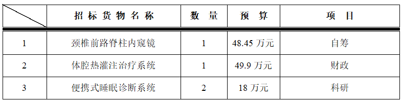 为满足临床科室需求,医学装备处拟对以下设备进行院内招标采购,采购项目的内容及数量: