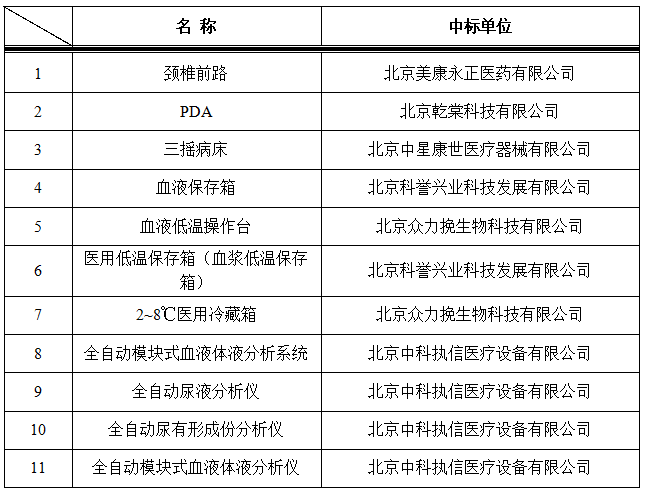 我院于2021年8月5日对以下医疗设备进行院内招标,中标结果如下: