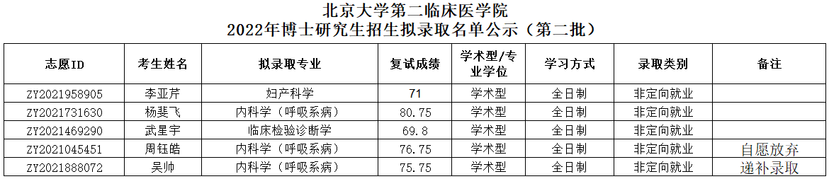 北京大学第二临床医学院 2022年博士研究生招生拟录取名单公示(第二批)