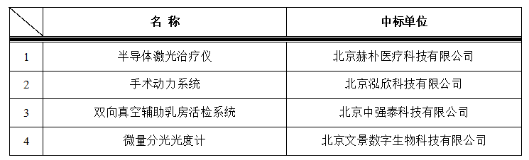 我院于2022年8月18日对以下医疗项目进行院内招标,中标结果如下: