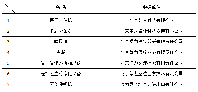 我院于2022年9月15日对以下医疗项目进行院内招标,中标结果如下: