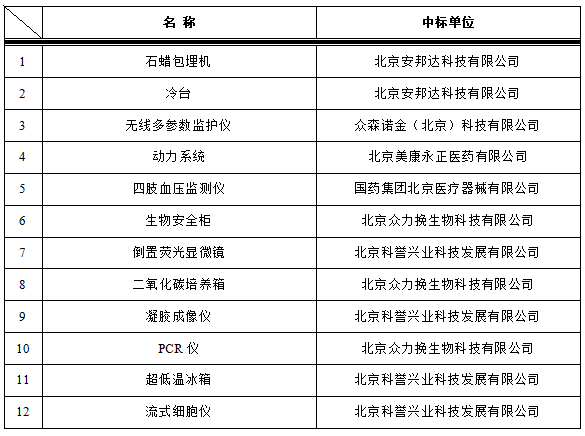 我院于2022年10月20日对以下医疗项目进行院内招标,中标结果如下: