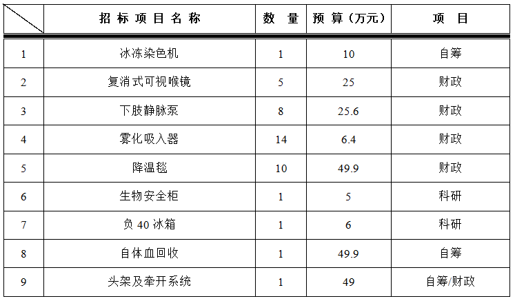 为满足临床科室需求,招标采购中心拟对以下设备进行院内招标采购,采购项目的内容及数量: