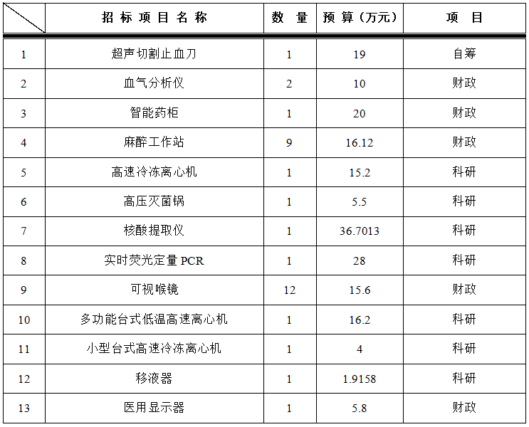 为满足临床科室需求,招标采购中心拟对以下设备进行院内招标采购,采购项目的内容及数量: