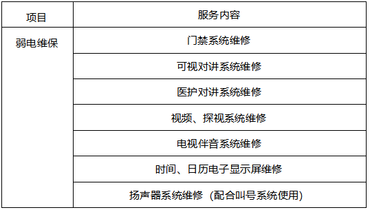 项目概况:对西直门及白塔寺院区的弱电系统及相关设备进行维保,范围主要包括病房内医患呼叫系统、门禁系统移机其他弱电系统维修工作。