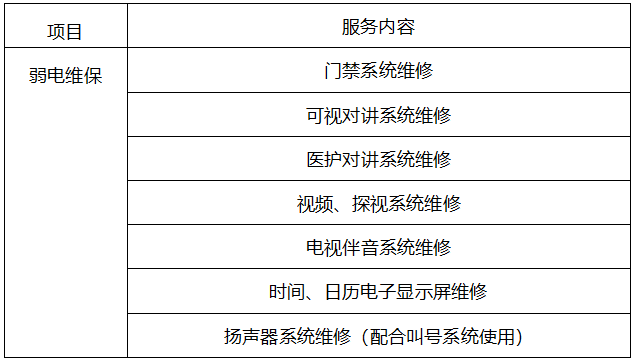 项目概况:对西直门及白塔寺院区的弱电系统及相关设备进行维保,范围主要包括病房内医患呼叫系统、门禁系统移机其他弱电系统维修工作。
