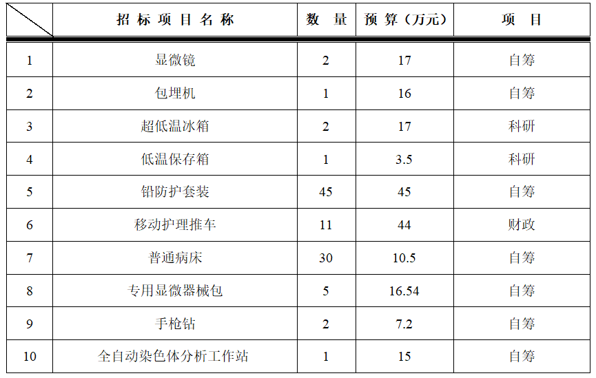 为满足临床科室需求,招标采购中心拟对以下设备进行院内招标采购,采购项目的内容及数量: