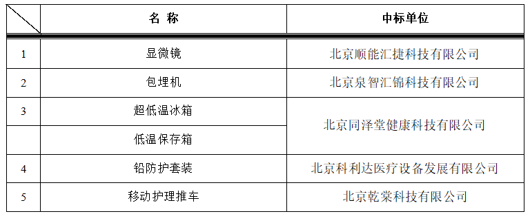专用显微器械包\手枪钻、全自动染色体分析工作站、普通病床3个项目有效投标人不足三家,废标。