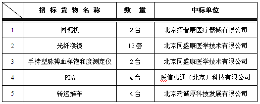 我院于2015年7月10日对以下设备进行院内谈判,中标结果如下:
