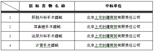 以上结果公示期2016年1月18日至2016年1月25日,如有异议可与医院设备处联系。