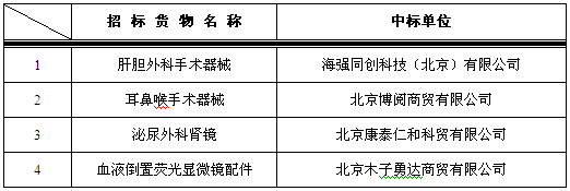 以上结果公示期2016年1月18日至2016年1月25日,如有异议可与医院设备处联系。