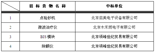 以上结果公示期2016年1月27日至2016年2月2日,如有异议可与医院设备处联系。